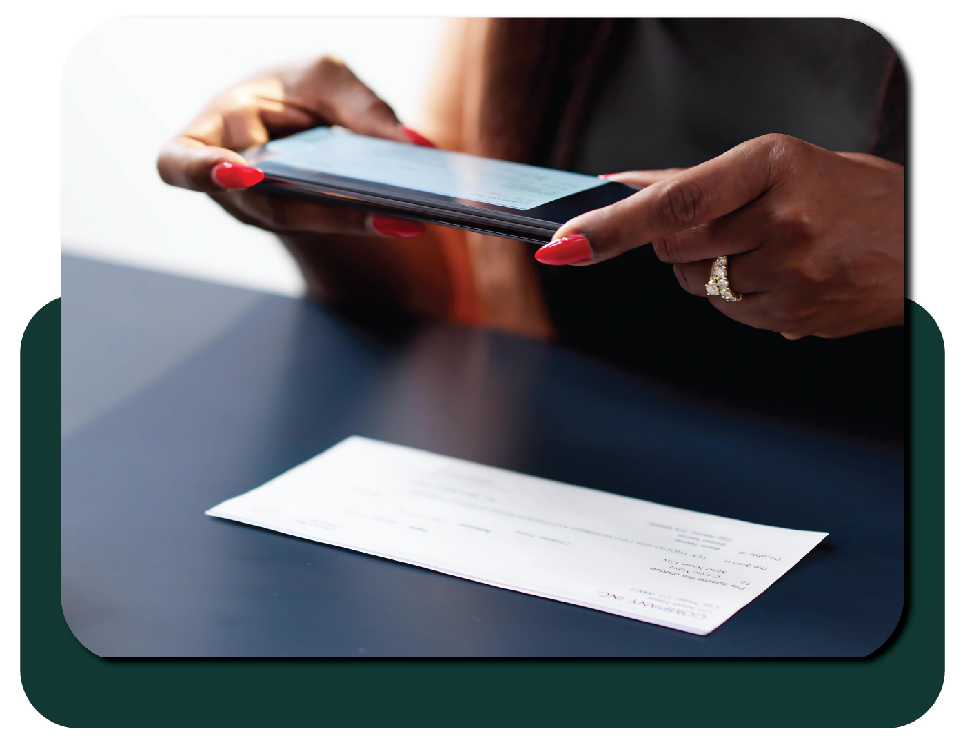 Save time with mobile check deposit. Just snap a photo of your checks through our mobile app and deposit them directly into your business account. No need to visit a branch!