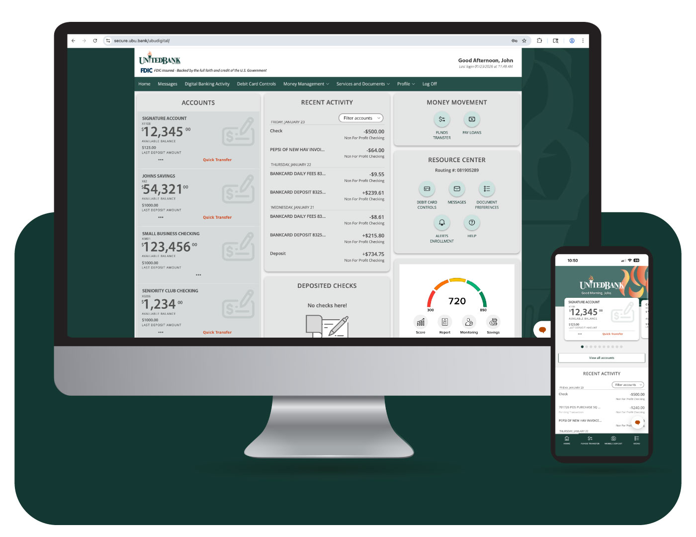 Manage your money with confidence anytime, anywhere. Our online and mobile banking tools are designed to be simple and secure, letting you check balances, pay bills, transfer funds, and deposit checks with ease. Plus, our dedicated support team is always here to help you navigate the technology whenever you need a hand.